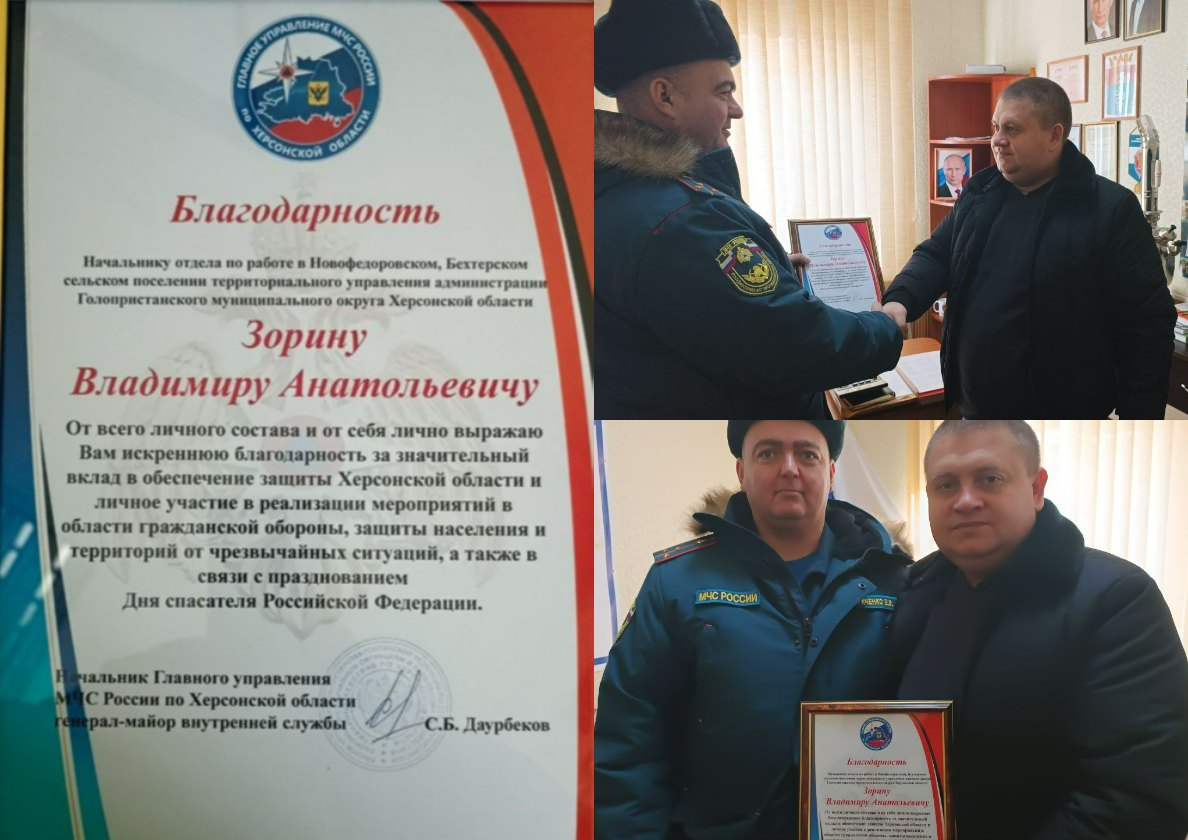 Заслуги Председателя Совета Голопристанского МО Партии в гражданской обороне отмечены благодарностью МЧС