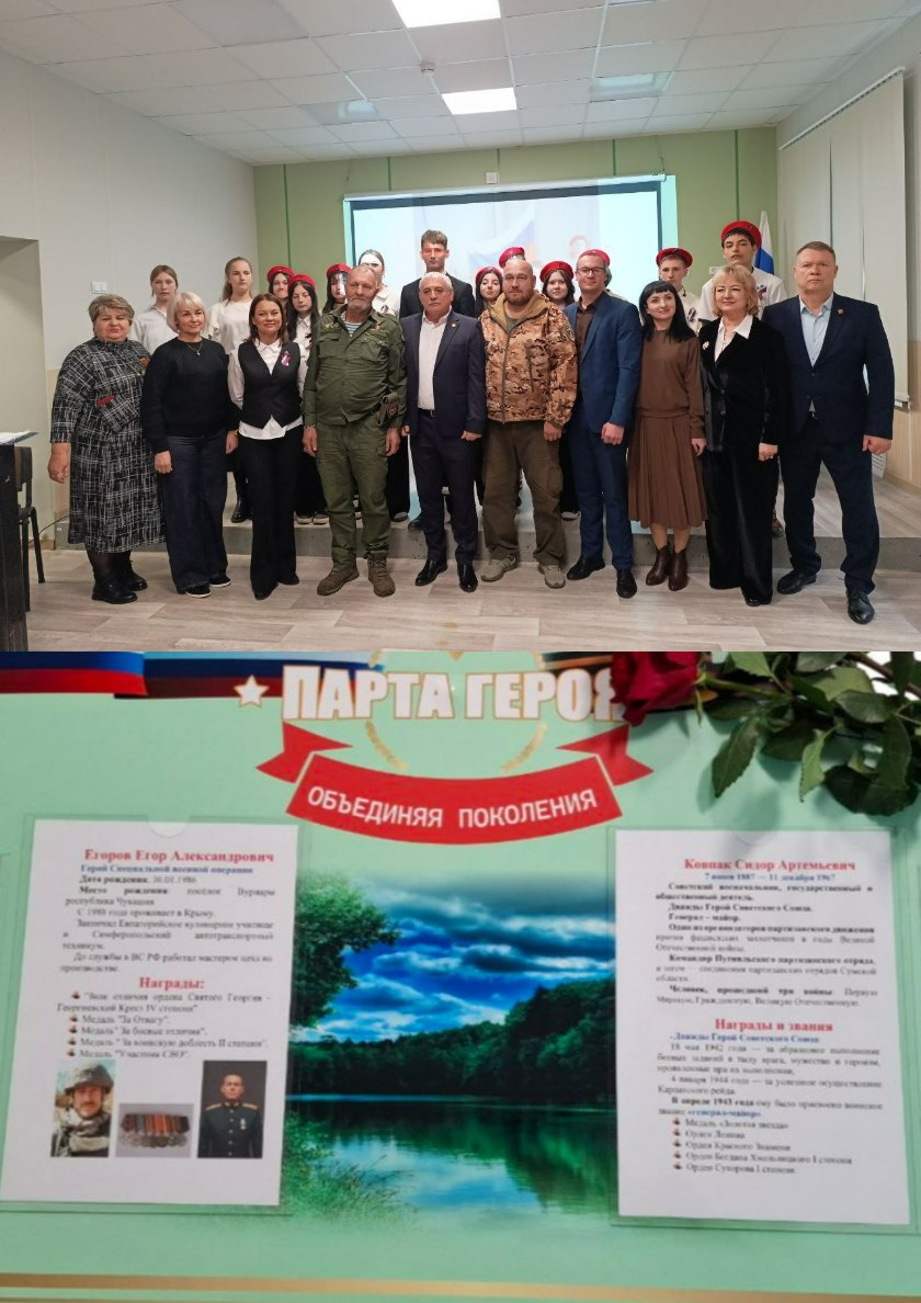 Парта увековечила память о двух героях, чьи судьбы разделяют десятилетия, но объединяет одно – беспримерное мужество в борьбе за Родину. Это легендарный партизанский командир, дважды Герой Советского Союза Сидор Артемьевич Ковпак и герой современности, участник специальной военной операции Егор Александрович Егоров, награждённый медалями "За отвагу", "За боевые отличия" и "За воинскую доблесть".